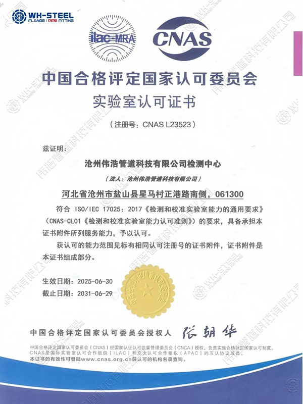 Another Milestone Leap: WH-STEEL Pipeline Awarded the CNAS National Laboratory Accreditation Certificate!